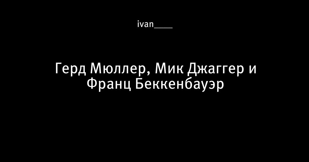 4 апреля 2014, 18:30 Герд Мюллер, Мик Джаггер и Франц Беккенбауэр Автор ivan____ Этот пост опубликован в блоге на Трибуне Sports.ru. Присоединяйтесь к крупнейшему сообществу спортивных болельщиков! Другие посты блога Old School Герд Мюллер фото Франц Беккенбауэр