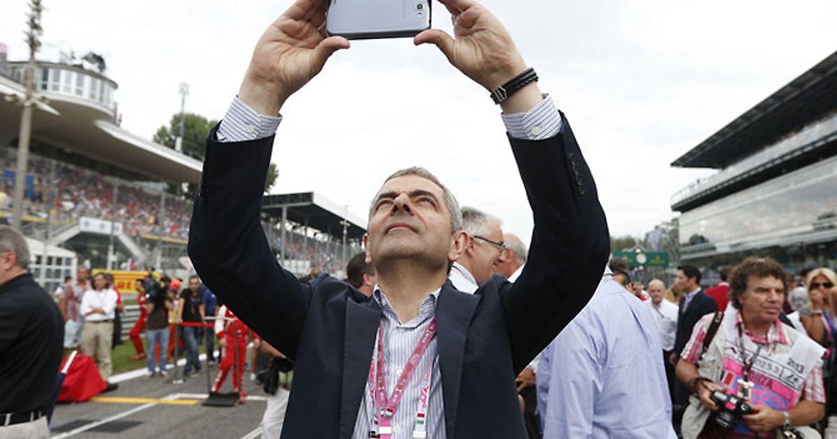 Гран-при Италии 2013 года. Роуэн Аткинсон не раз замечался в боксах «Макларена» и «Мерседеса». Похоже, «Мистер Бин» болеет за соотечественников, особенно за Льюиса Хэмилтона.