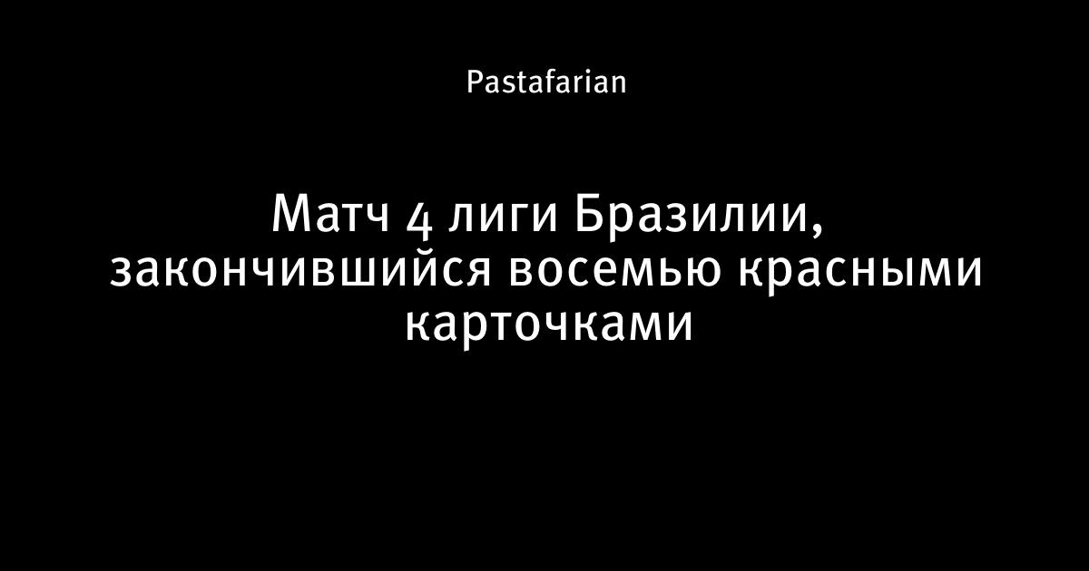 7 апреля 2014, 20:31 Матч 4 лиги Бразилии, закончившийся восемью красными карточками 1 Автор Pastafarian Этот пост опубликован в блоге на Трибуне Sports.ru. Присоединяйтесь к крупнейшему сообществу спортивных болельщиков! Другие посты блога Телевизор 3.0 видео происшествия Д4 Бразилия