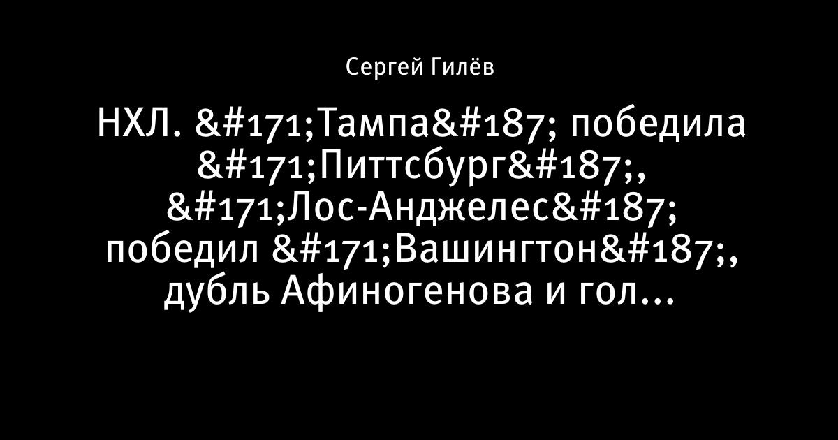 НХЛ. «Тампа» победила «Питтсбург», «Лос-Анджелес» победил «Вашингтон», дубль Афиногенова и гол Ковальчука
