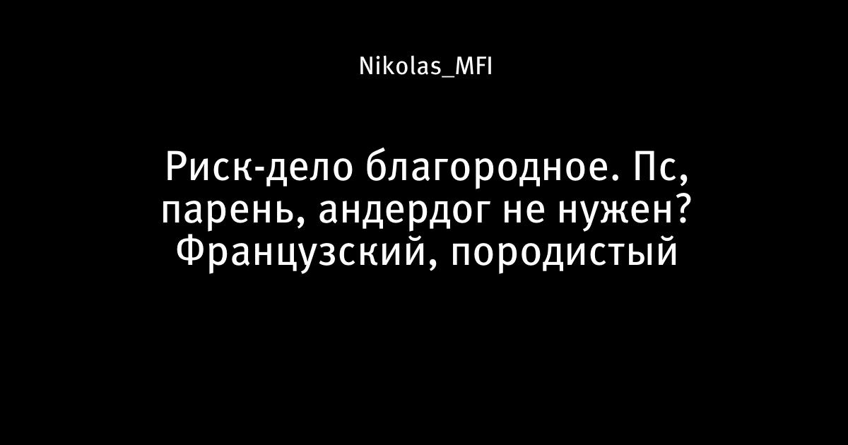 Риск-дело благородное. Пс, парень, андердог не нужен? Французский, породистый