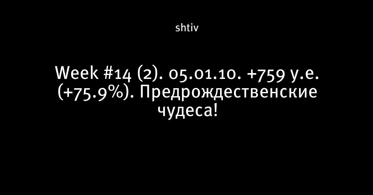 Week #14 (2). 05.01.10. +759 у.е. (+75.9%). Предрождественские чудеса!