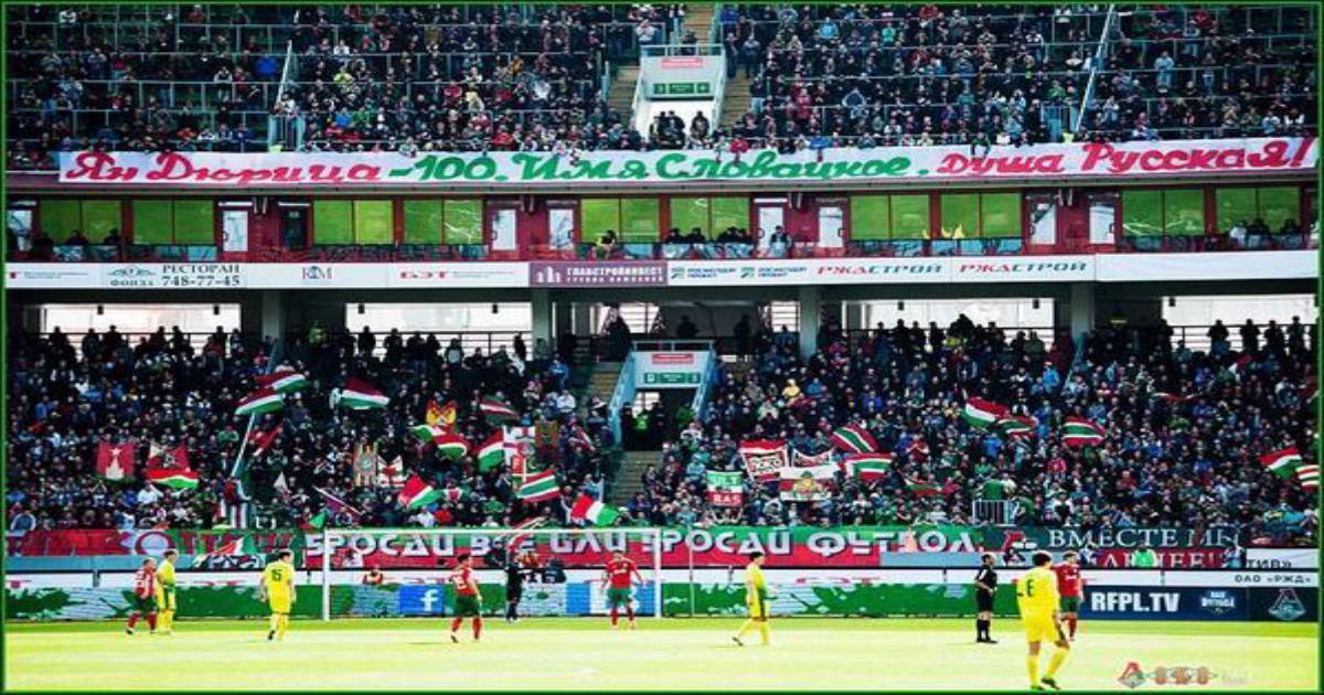 Фанаты железнодорожников на матче с махачкалинцами вывесили баннер в честь проводящего свой сотый матч за клуб Яна Дюрицы