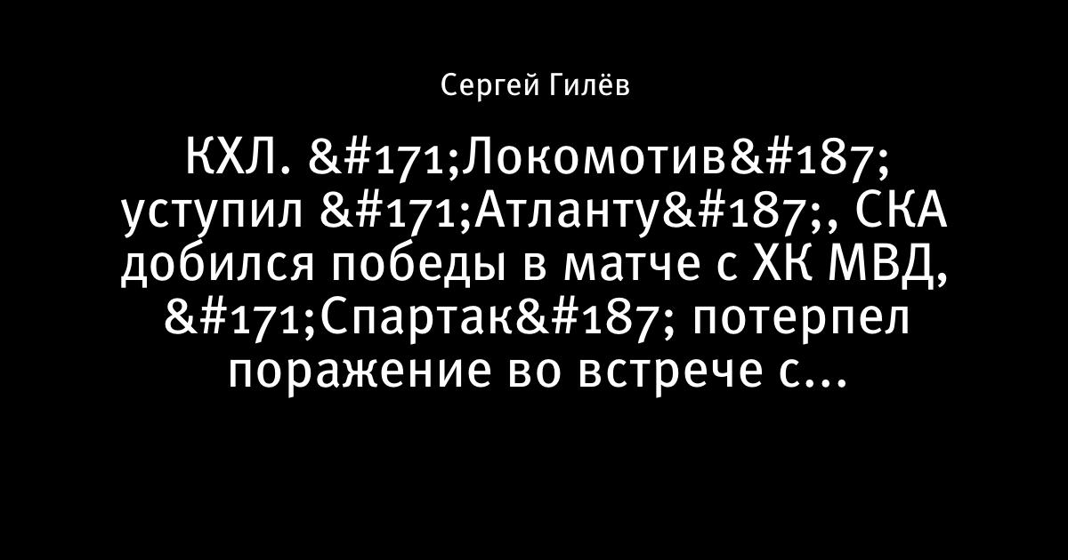 КХЛ. «Локомотив» уступил «Атланту», СКА добился победы в матче с ХК МВД, «Спартак» потерпел поражение во встрече с «Северсталью»