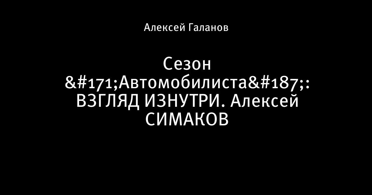 Сезон «Автомобилиста»: ВЗГЛЯД ИЗНУТРИ. Алексей СИМАКОВ