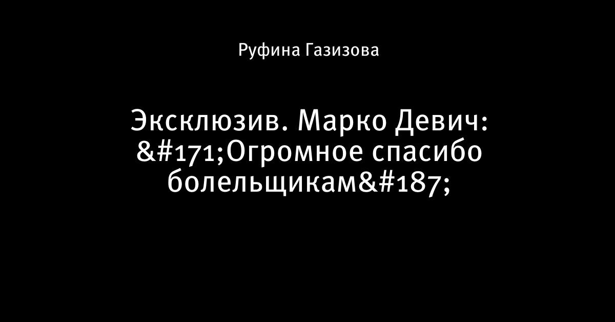 20 апреля 2014, 17:38 Эксклюзив. Марко Девич: «Огромное спасибо болельщикам» 1 Автор Руфина Газизова Этот пост опубликован в блоге на Трибуне Sports.ru. Присоединяйтесь к крупнейшему сообществу спортивных болельщиков! Другие посты блога Футбольный клуб «Рубин» Марко Девич Рубин Спартак