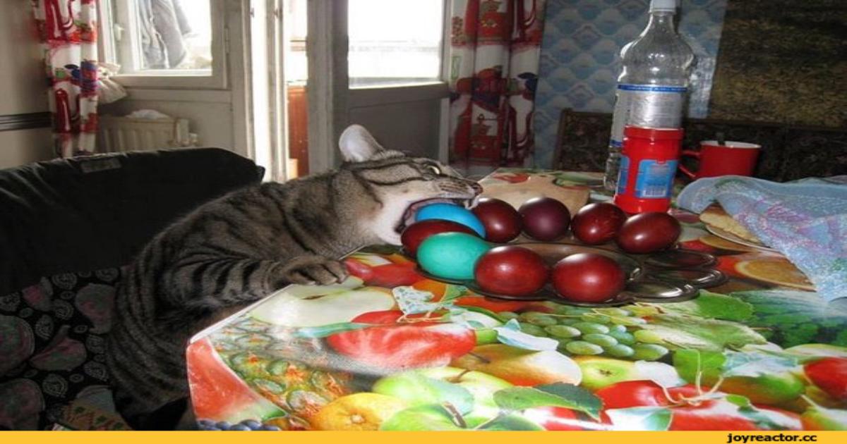 〜^❍ᴥ❍^〜 В Пасху коту крашеные яйца заменяют колбасу