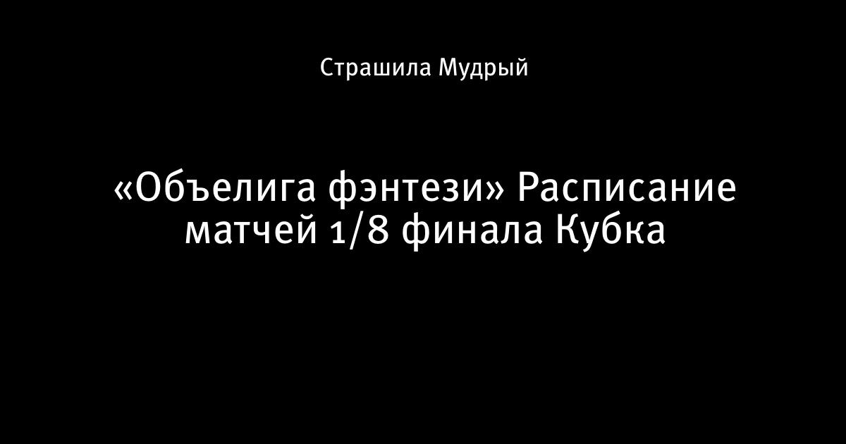«Объелига фэнтези» Расписание матчей 1/8 финала Кубка