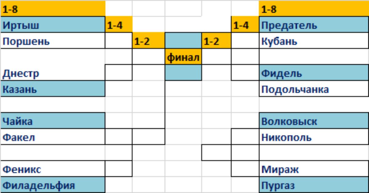 (хозяева Поршень, Казань, Чайка, Феникс, Предатель, Фидель, Никополь, Мираж)