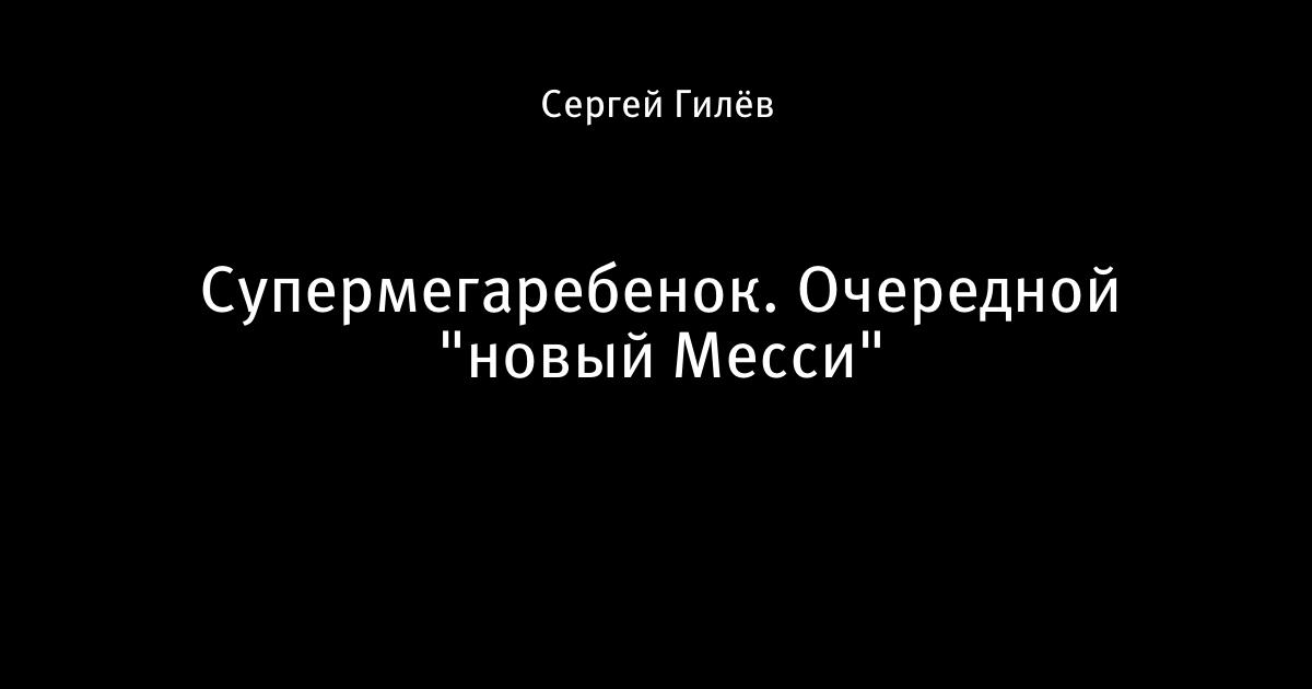 9 января 2010, 13:36 Супермегаребенок. Очередной "новый Месси" Автор Сергей Гилёв Этот пост опубликован в блоге на Трибуне Sports.ru. Присоединяйтесь к крупнейшему сообществу спортивных болельщиков! Другие посты блога Телевизор 3.0