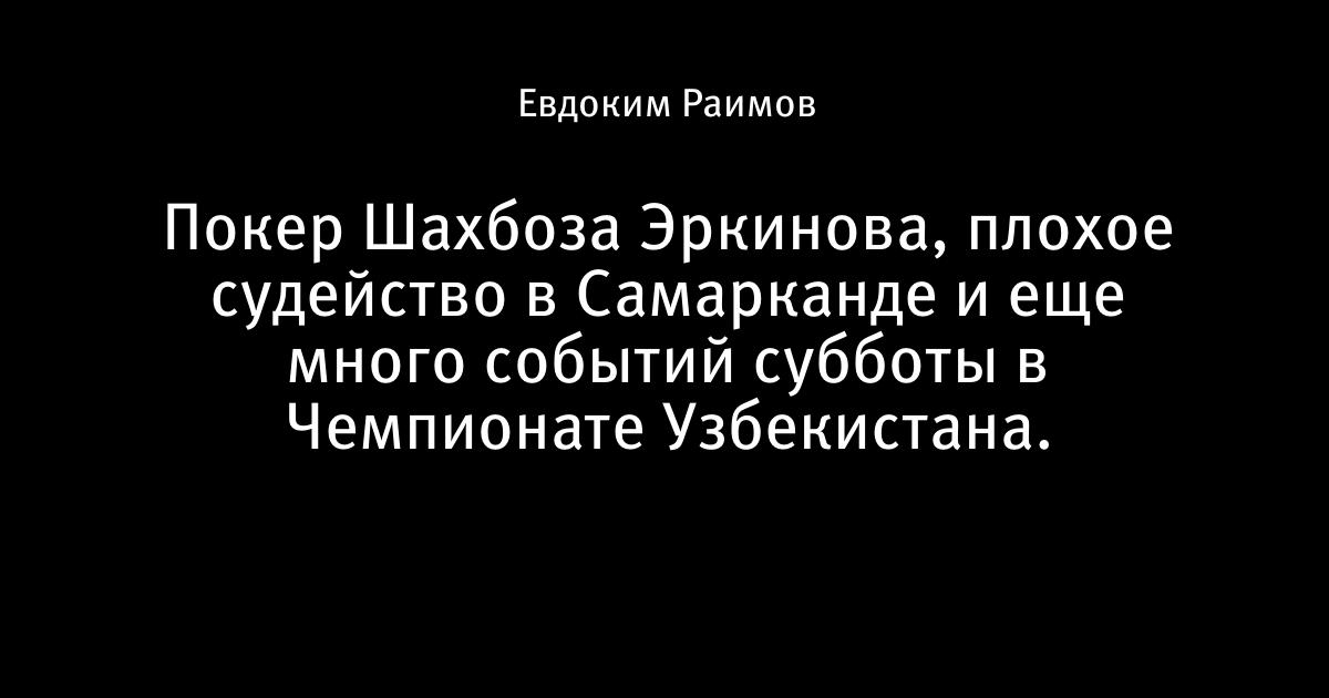 Покер Шахбоза Эркинова, плохое судейство в Самарканде и еще много событий субботы в Чемпионате Узбекистана.