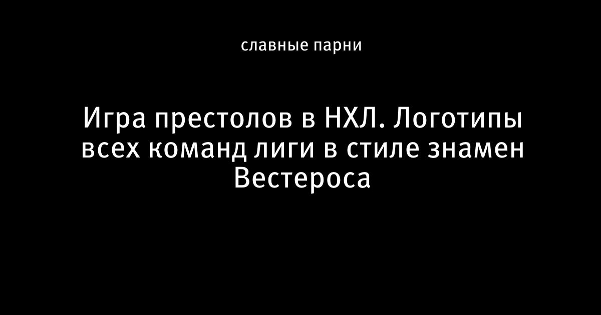 28 апреля 2014, 21:56 Игра престолов в НХЛ. Логотипы всех команд лиги в стиле знамен Вестероса Автор славные парни Этот пост опубликован в блоге на Трибуне Sports.ru. Присоединяйтесь к крупнейшему сообществу спортивных болельщиков! Другие посты блога Айс-ТВ НХЛ
