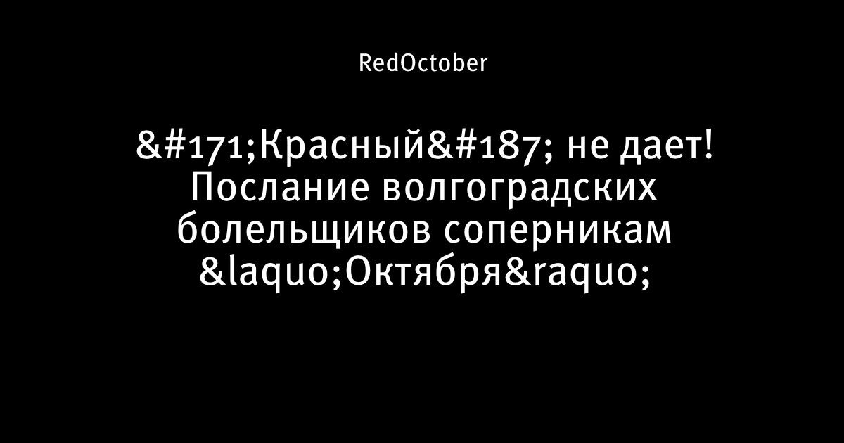 1 мая 2014, 15:55 «Красный» не дает! Послание волгоградских болельщиков соперникам «Октября» 1 Автор RedOctober Этот пост опубликован в блоге на Трибуне Sports.ru. Присоединяйтесь к крупнейшему сообществу спортивных болельщиков! Другие посты блога Красный Blog Единая лига ВТБ Локомотив-Кубань Красный Октябрь