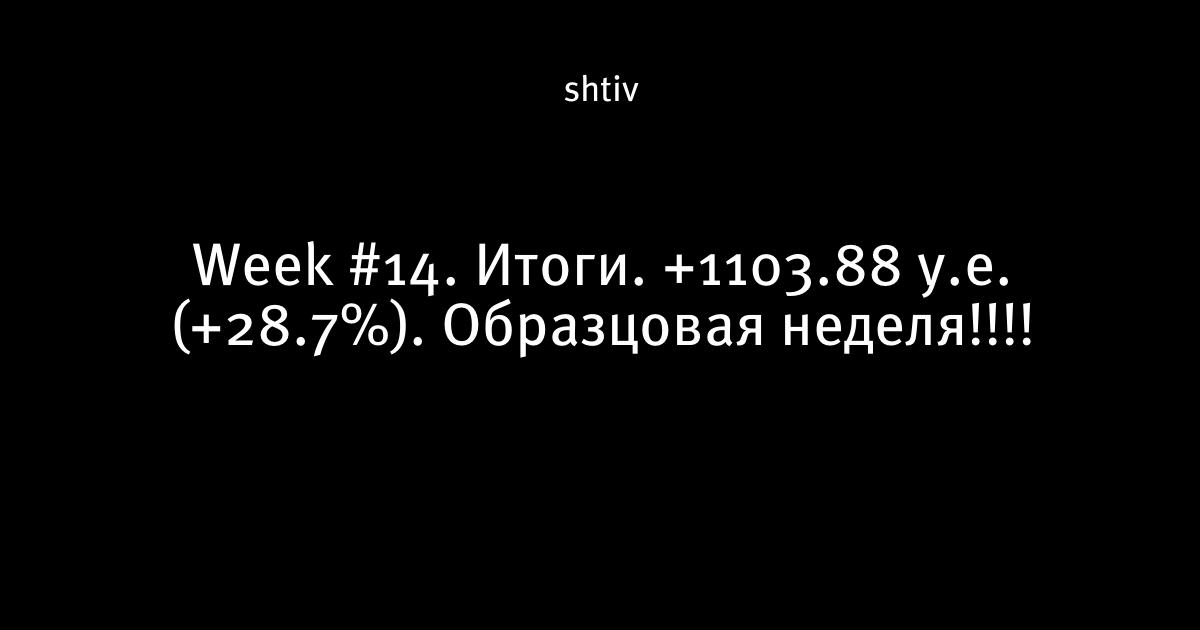 Week #14. Итоги. +1103.88 у.е. (+28.7%). Образцовая неделя!!!!