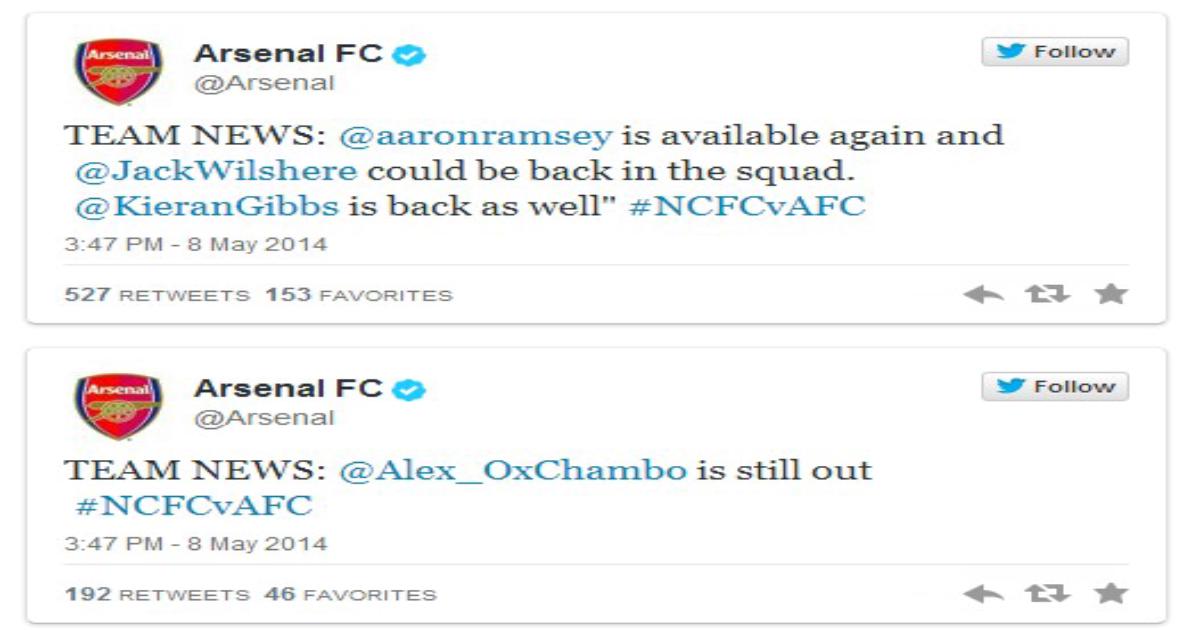 Киран Гиббс также возвращается в состав. В данный момент он нормально тренируется. Алекс Окслейд-Чемберлен по-прежнему выбыл.