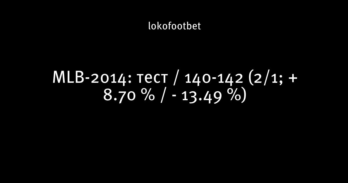 MLB-2014: тест / 140-142 (2/1; + 8.70 % / - 13.49 %)