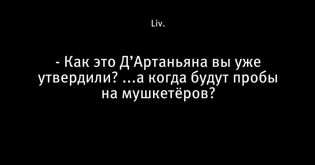 - Как это Д’Артаньяна вы уже утвердили? ...а когда будут пробы на мушкетёров?