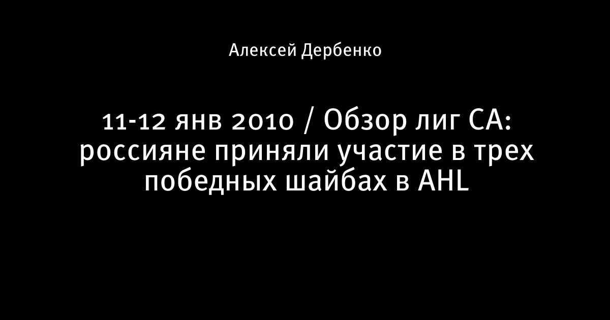 11-12 янв 2010 / Обзор лиг СА: россияне приняли участие в трех победных шайбах в AHL