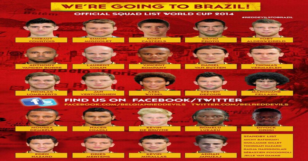 13 мая 2014, 16:39 Стал известен состав сборной Бельгии на ЧМ-2014 Автор DolJun Этот пост опубликован в блоге на Трибуне Sports.ru. Присоединяйтесь к крупнейшему сообществу спортивных болельщиков! Другие посты блога Телевизор 3.0 Венсан Компани Тибо Куртуа Эден Азар Симон Миньоле Ромелу Лукаку