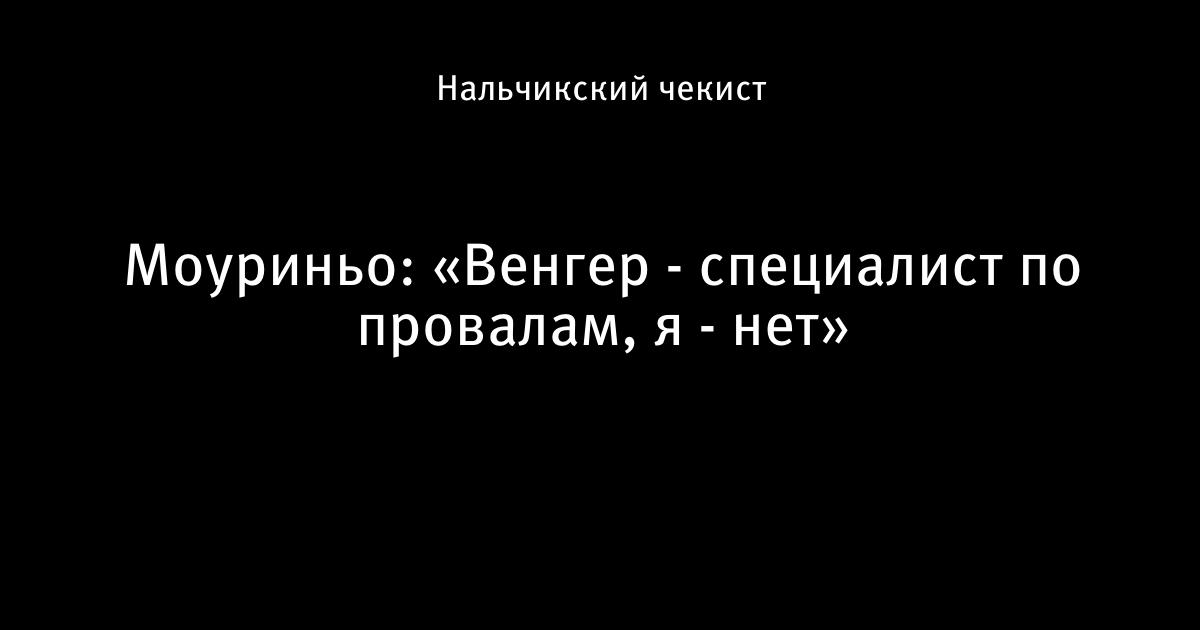 18 мая 2014, 11:16 Моуриньо: «Венгер - специалист по провалам, я - нет» 1 Автор Нальчикский чекист Этот пост опубликован в блоге на Трибуне Sports.ru. Присоединяйтесь к крупнейшему сообществу спортивных болельщиков! Другие посты блога Телевизор 3.0 Арсенал Челси Арсен Венгер Жозе Моуринью