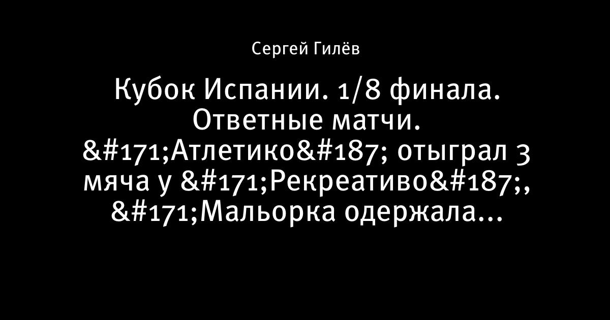 15 января 2010, 09:26 Кубок Испании. 1/8 финала. Ответные матчи. «Атлетико» отыграл 3 мяча у «Рекреативо», «Мальорка одержала волевую победу над «Райо Вальекано» Мальорка Райо Вальекано Д2 3:1 0:1 Пити (45) 1:1 Виктор (50) 2:1 Виктор (60) 3:1 Марио Суарес (90+1) Атлетико Рекреативо 5:1 1:0 Симао (22) 2:0 Агуэро (24) 3:0 Уйфалуши (39) 4:0 Агуэро (62) 4:1 Кармона (71) 5:1 Симау (83) Автор Сергей Гилёв Этот пост опубликован в блоге на Трибуне Sports.ru. Присоединяйтесь к крупнейшему сообществу спортивных болельщиков! Другие посты блога Разборки в олимпийском Париже