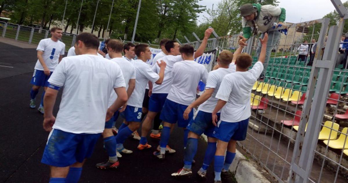 Футболисты брестского «Динамо» приветствуют своего болельщика, который отправился на выезд команды ... пешком