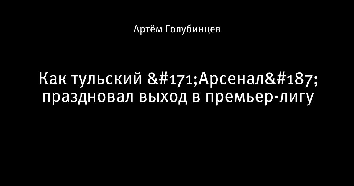 21 мая 2014, 14:00 Как тульский «Арсенал» праздновал выход в премьер-лигу Автор Артём Голубинцев Этот пост опубликован в блоге на Трибуне Sports.ru. Присоединяйтесь к крупнейшему сообществу спортивных болельщиков! Другие посты блога Телевизор 3.0 видео премьер-лига Россия Арсенал Тула