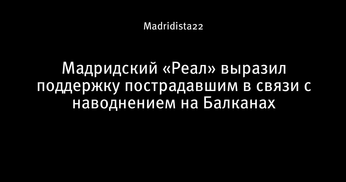 23 мая 2014, 21:27 Мадридский «Реал» выразил поддержку пострадавшим в связи с наводнением на Балканах Автор Madridista22 Этот пост опубликован в блоге на Трибуне Sports.ru. Присоединяйтесь к крупнейшему сообществу спортивных болельщиков! Другие посты блога Телевизор 3.0 Реал Мадрид