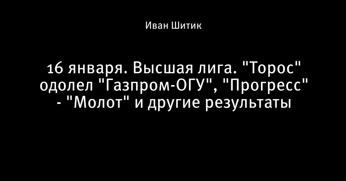 16 января. Высшая лига. "Торос" одолел "Газпром-ОГУ", "Прогресс" - "Молот" и другие результаты