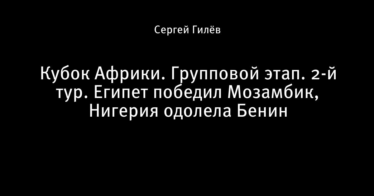 17 января 2010, 01:24 Кубок Африки. Групповой этап. 2-й тур. Египет победил Мозамбик, Нигерия одолела Бенин Египет Мозамбик 2:0 1:0 Хан (47, автогол), 2:0 Геддо (81) Нигерия Бенин 1:0 1:0 Айегбени (42, пенальти) Автор Сергей Гилёв Этот пост опубликован в блоге на Трибуне Sports.ru. Присоединяйтесь к крупнейшему сообществу спортивных болельщиков! Другие посты блога Разборки в олимпийском Париже