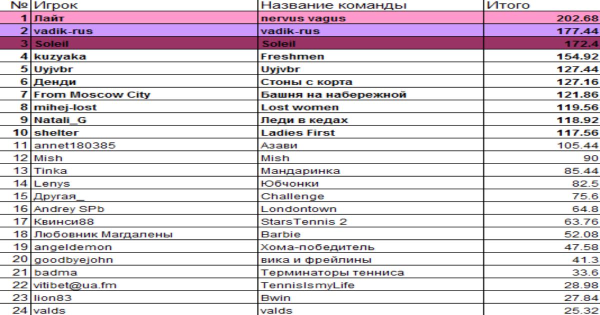 Общий зачёт Альтернативного турнира