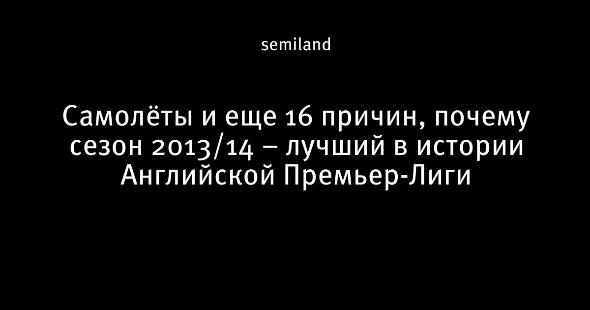 Во всех ведущих чемпионатах сезоны успешно завершены, поэтому до старта мирового первенства по футболу у нас есть время для подведения итогов. Завершившийся сезон в Английской Премьер-Лиге получился уникальным, ведь в нём была не только увлекательная чемпионская гонка и огромное количество голов, но даже самолеты! Рискну предположить, что сезон 2013/14 – лучший в истории Премьер-Лиги, и сейчас я постараюсь это доказать.