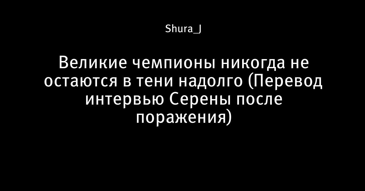 Великие чемпионы никогда не остаются в тени надолго (Перевод интервью Серены после поражения)
