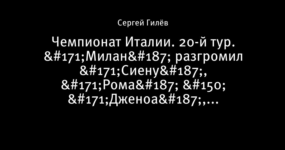 Чемпионат Италии. 20-й тур. «Милан» разгромил «Сиену», «Рома» «Дженоа», «Ювентус» уступил «Кьево»