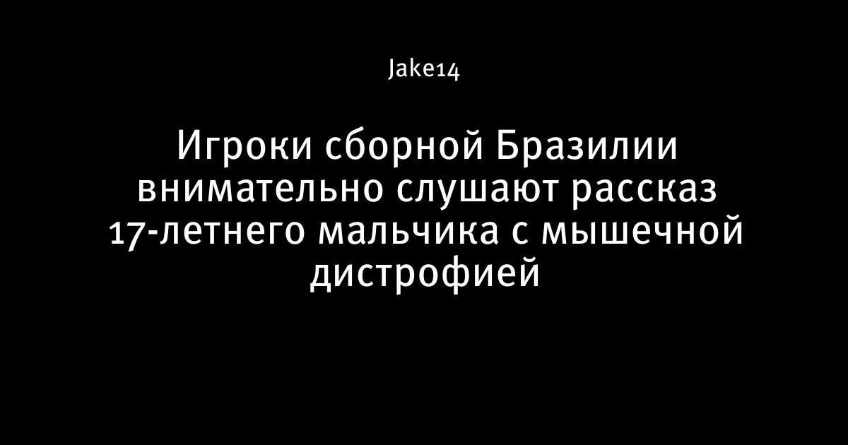 29 мая 2014, 18:04 Игроки сборной Бразилии внимательно слушают рассказ 17-летнего мальчика с мышечной дистрофией Автор Jake14 Этот пост опубликован в блоге на Трибуне Sports.ru. Присоединяйтесь к крупнейшему сообществу спортивных болельщиков! Другие посты блога Телевизор 3.0 Сборная Бразилии по футболу