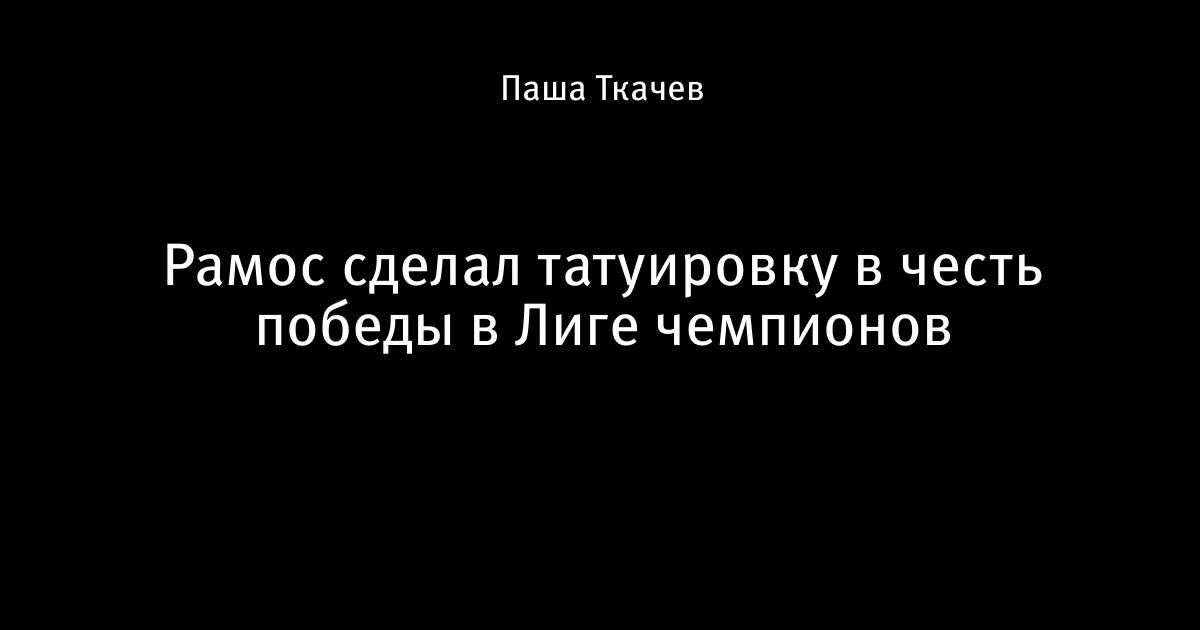 31 мая 2014, 13:50 Рамос сделал татуировку в честь победы в Лиге чемпионов Автор Паша Ткачев Этот пост опубликован в блоге на Трибуне Sports.ru. Присоединяйтесь к крупнейшему сообществу спортивных болельщиков! Другие посты блога Телевизор 3.0 Реал Мадрид Серхио Рамос