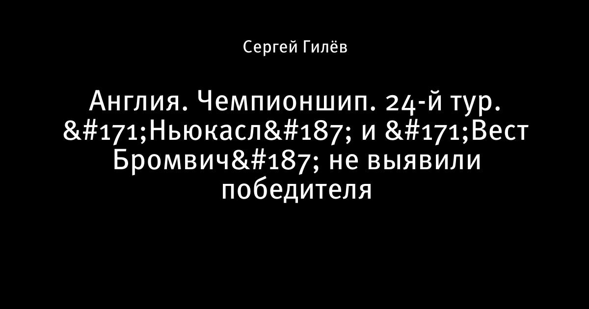 19 января 2010, 02:03 Англия. Чемпионшип. 24-й тур. «Ньюкасл» и «Вест Бромвич» не выявили победителя Ньюкасл Вест Бромвич- 2:2 1, 2, 3, 4 Автор Сергей Гилёв Этот пост опубликован в блоге на Трибуне Sports.ru. Присоединяйтесь к крупнейшему сообществу спортивных болельщиков! Другие посты блога Разборки в олимпийском Париже