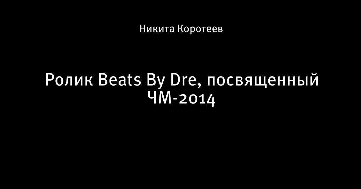 5 июня 2014, 22:20 Ролик Beats By Dre, посвященный ЧМ-2014 1 Автор Никита Коротеев Этот пост опубликован в блоге на Трибуне Sports.ru. Присоединяйтесь к крупнейшему сообществу спортивных болельщиков! Другие посты блога Вы это видели?