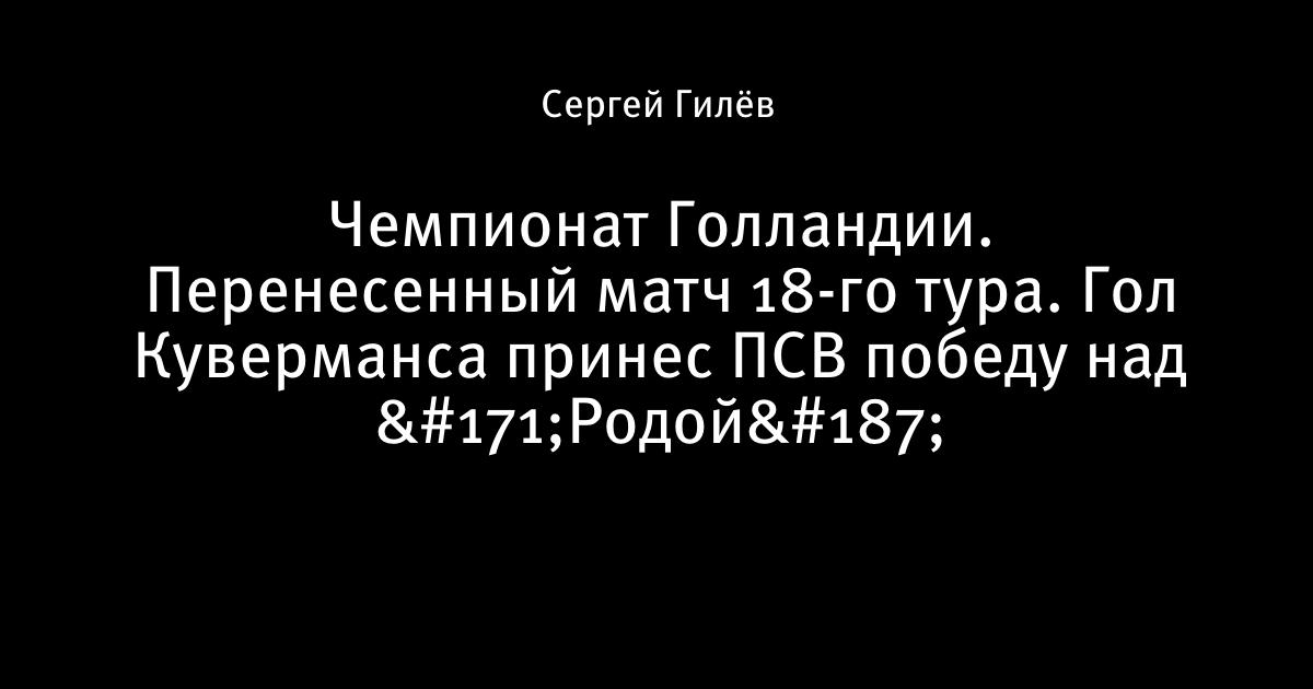 20 января 2010, 02:25 Чемпионат Голландии. Перенесенный матч 18-го тура. Гол Куверманса принес ПСВ победу над «Родой» Рода ПСВ 0:1 0:1 Куверманс (45) Автор Сергей Гилёв Этот пост опубликован в блоге на Трибуне Sports.ru. Присоединяйтесь к крупнейшему сообществу спортивных болельщиков! Другие посты блога Разборки в олимпийском Париже