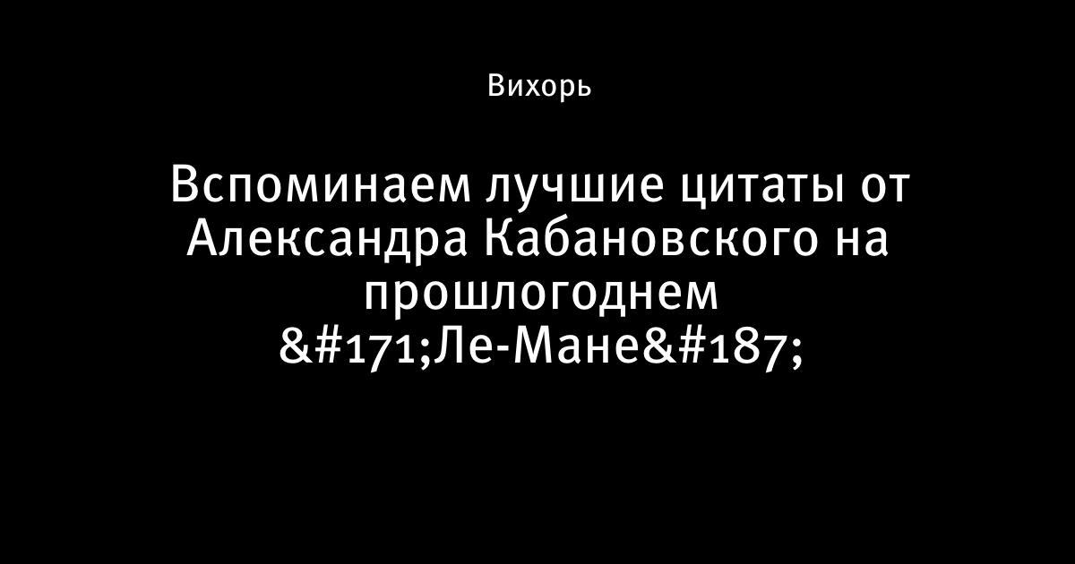 13 июня 2014, 18:14 Вспоминаем лучшие цитаты от Александра Кабановского на прошлогоднем «Ле-Мане» 1 Автор Вихорь Этот пост опубликован в блоге на Трибуне Sports.ru. Присоединяйтесь к крупнейшему сообществу спортивных болельщиков! Другие посты блога Крутой поворот Камуи Кобаяси Ник Хайдфельд 24 часа Ле-Мана