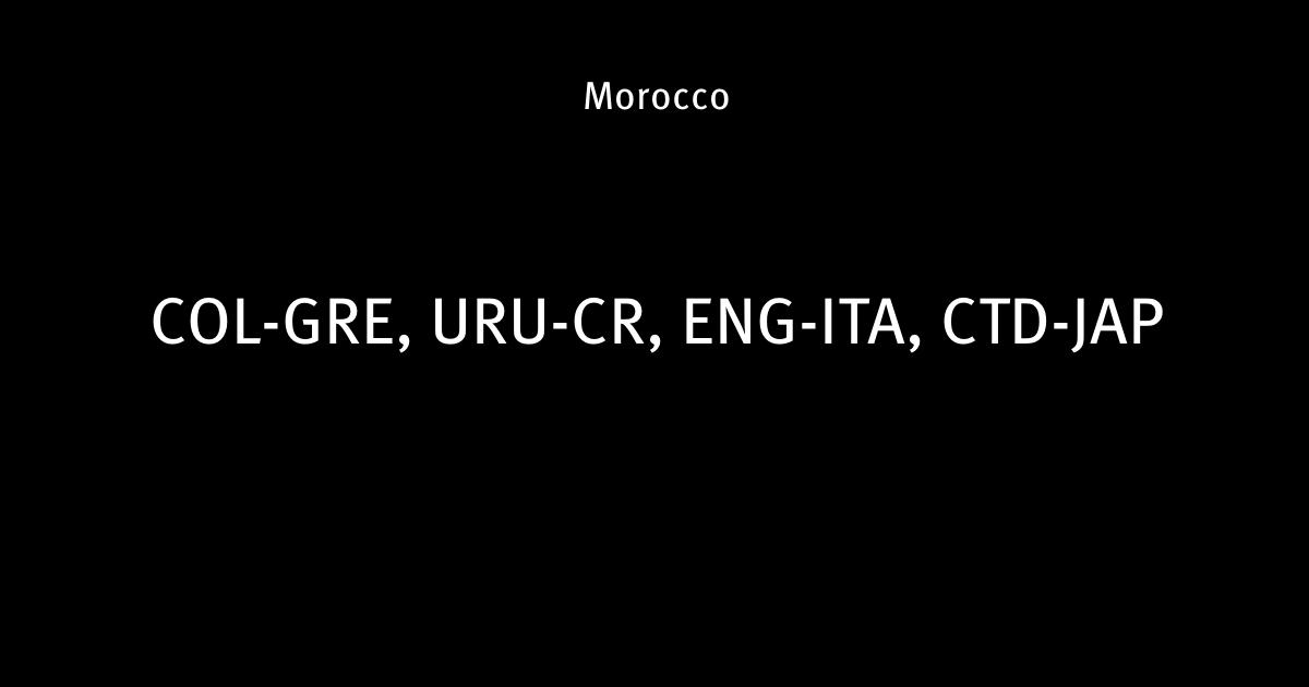 COL-GRE, URU-CR, ENG-ITA, CTD-JAP