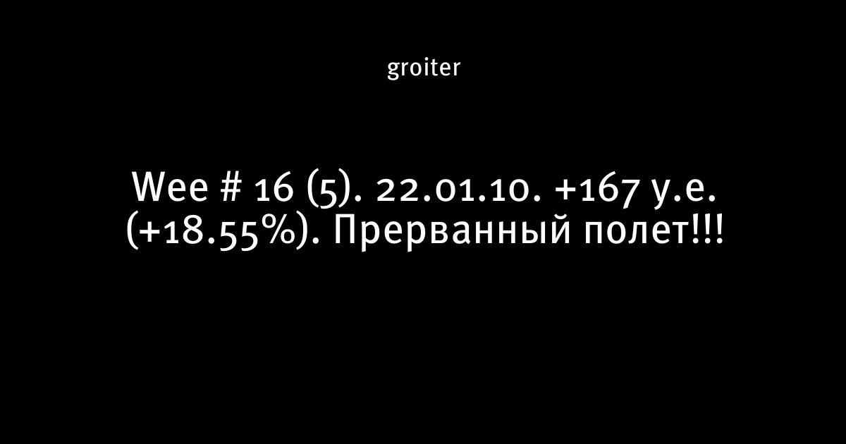 Wee # 16 (5). 22.01.10. +167 у.е. (+18.55%). Прерванный полет!!!