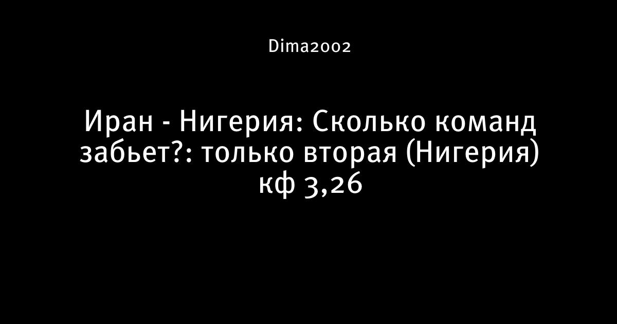 Иран - Нигерия: Сколько команд забьет?: только вторая (Нигерия) кф 3,26