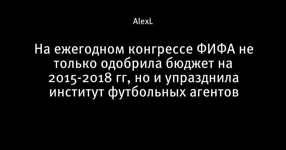 На ежегодном конгрессе ФИФА не только одобрила бюджет на 2015-2018 гг, но и упразднила институт футбольных агентов