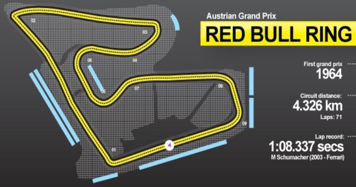 Трасса, расположенная в горах австрийского региона Стирия, переименованная в Red Bull Ring, относительно короткая и очень быстрая.