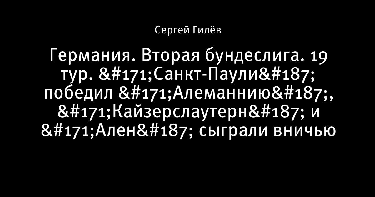 23 января 2010, 22:11 Германия. Вторая бундеслига. 19 тур. «Санкт-Паули» победил «Алеманнию», «Кайзерслаутерн» и «Ален» сыграли вничью Санкт-Паули Алеманния 1:0 1:0 Крузе (30) Кайзерслаутерн Рот-Вайсс Ален 0:0 Автор Сергей Гилёв Этот пост опубликован в блоге на Трибуне Sports.ru. Присоединяйтесь к крупнейшему сообществу спортивных болельщиков! Другие посты блога Разборки в олимпийском Париже
