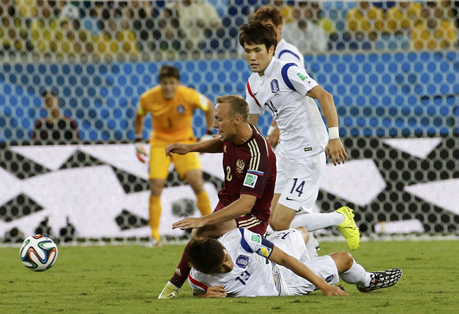 - Перед игрой Россия — Южная Корея все посмотрели матч Бразилия — Мексика. Там был сумасшедший накал, бешеные скорости. Нам всем хотелось увидеть что-то похожее в игре сборной России. Хотелось бы видеть от России футбол такого же уровня. Что касается игры. Не понравился унылый первый тайм. Не понимали игроки, что делать. Сказался мандраж. Многих игроков он сковал настолько, что люди просто пропали, как тот же Шатов. Со временем он будет лидером сборной, но в этом матче… Я думал, его поменяют после первого тайма. Я ждал выхода Дзагоева. В первом тайме и подходов толком не было. Второй тайм обнадёжил. Да, была ошибка, но такие у всех бывают. Игорь Акинфеев выручал, выручает и будет выручать. Ни в коем случае винить его нельзя. Руки прочь от Акинфеева. Понравилось, что команда быстро собралась после пропущенного мяча. Быстро сравняли, и после этого увидели то, что и хотели бы видеть. Команда побежала, могли ещё забить. В концовке мы прибавили, это говорит о том, что мы перебегали сборную Южной Кореи, которая была готова прилично. Последние 5 минут корейцы просто отбивались.