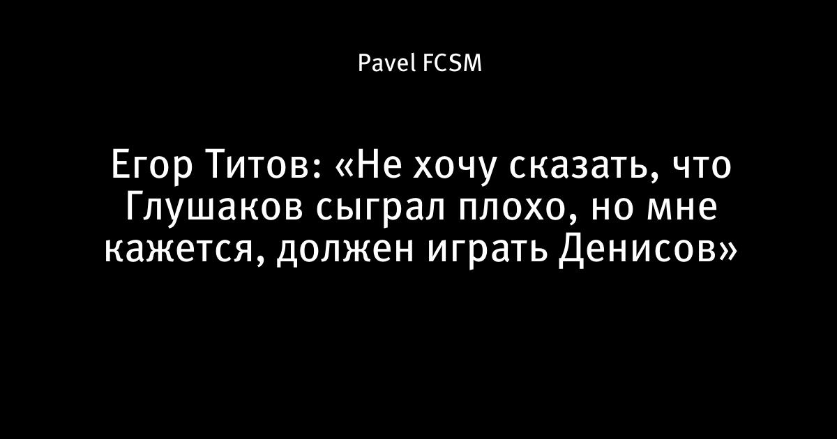 Егор Титов: «Не хочу сказать, что Глушаков сыграл плохо, но мне кажется, должен играть Денисов»