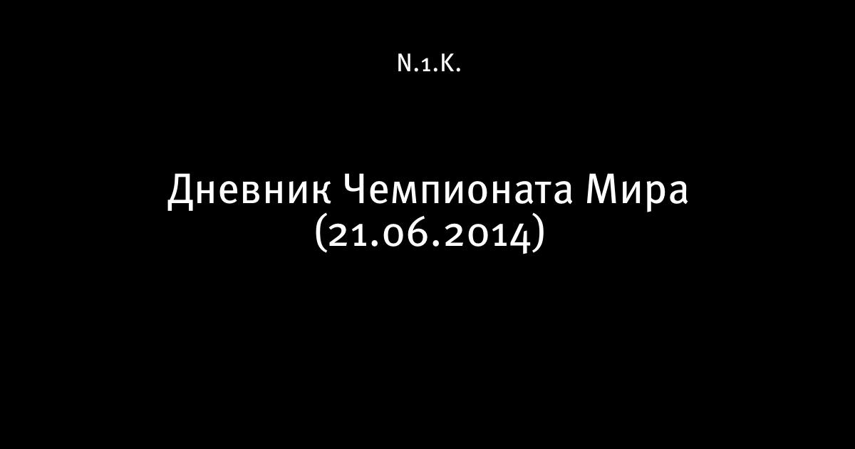 21 июня 2014, 19:23 Дневник Чемпионата Мира (21.06.2014) 1 Автор N.1.K. Этот пост опубликован в блоге на Трибуне Sports.ru. Присоединяйтесь к крупнейшему сообществу спортивных болельщиков! Другие посты блога Разборки в олимпийском Париже видео чемпионат мира Сборная Эквадора по футболу Сборная Италии по футболу Сборная Франции по футболу