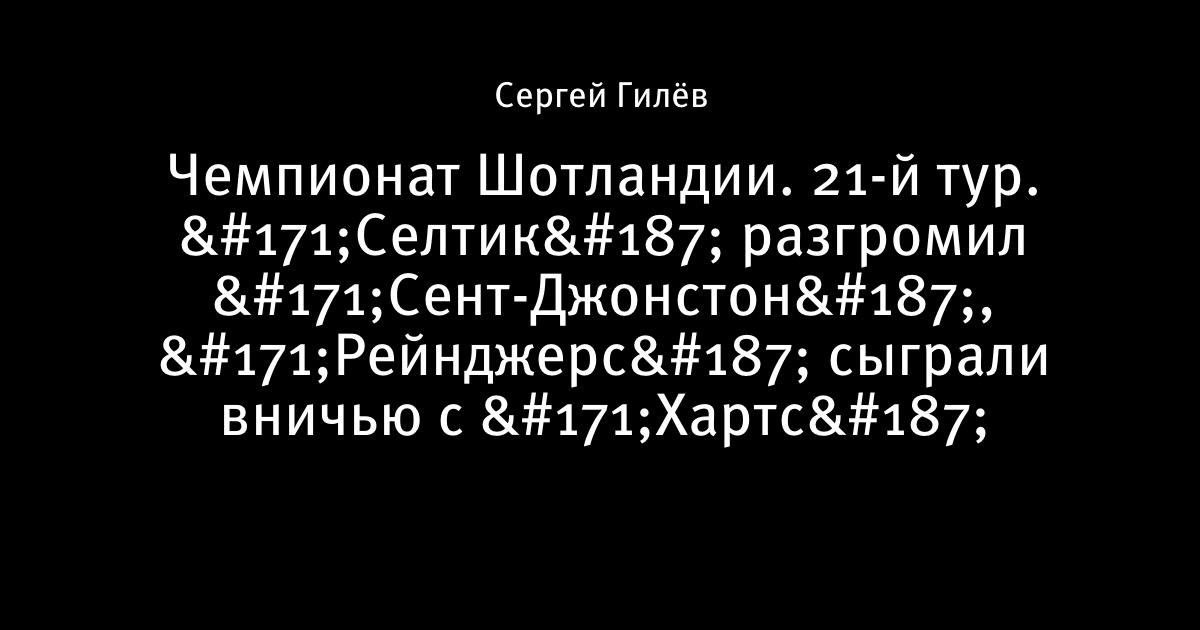 Чемпионат Шотландии. 21-й тур. «Селтик» разгромил «Сент-Джонстон», «Рейнджерс» сыграли вничью с «Хартс»